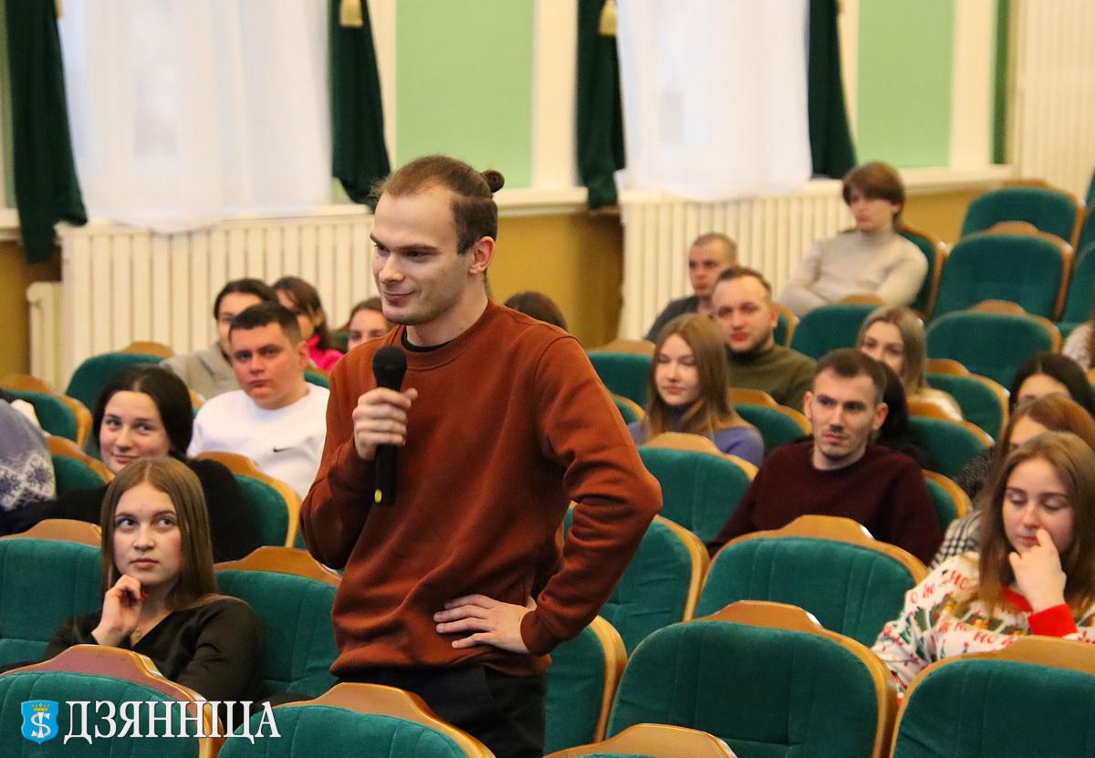 – Хацелася б з вамі шчыра пагутарыць, – звярнуўся да прысутных Аляксей Садоўскі. – Мэта сённяшняга мерапрыемства – зразумець, пра што думае і да чаго імкнецца шчучынская моладзь. Якія планы будуеце на жыццё, што хацелі б змяніць. Бо вы – наша будучыня, менавіта ад вас залежыць, якое жыццё чакае наш раён і ўсю краіну.