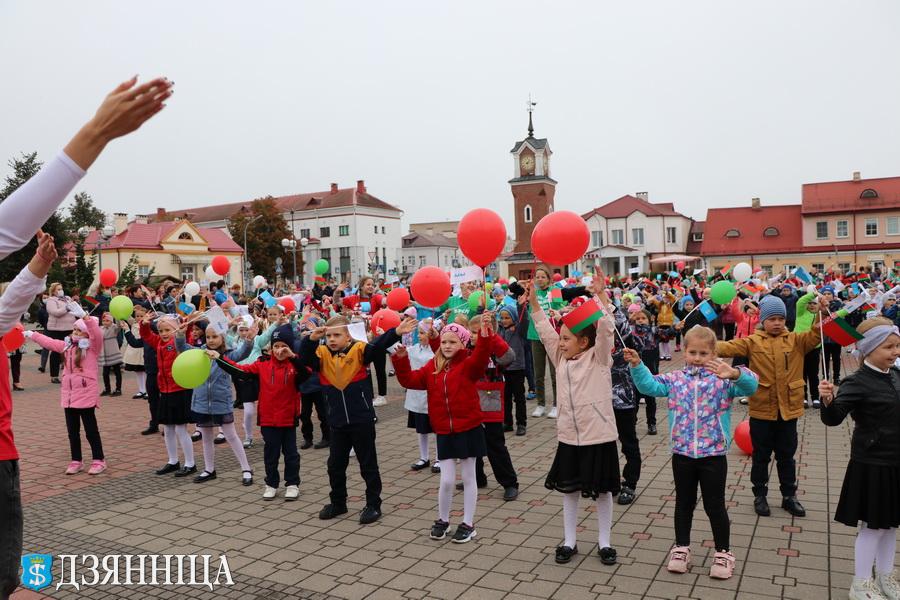 На цэнтральнай плошчы горада – 331 вучань з 16 устаноў адукацыі раёна. Першакласнікі сабраліся, каб атрымаць сваю першую і самую галоўную кнігу – буквар.
