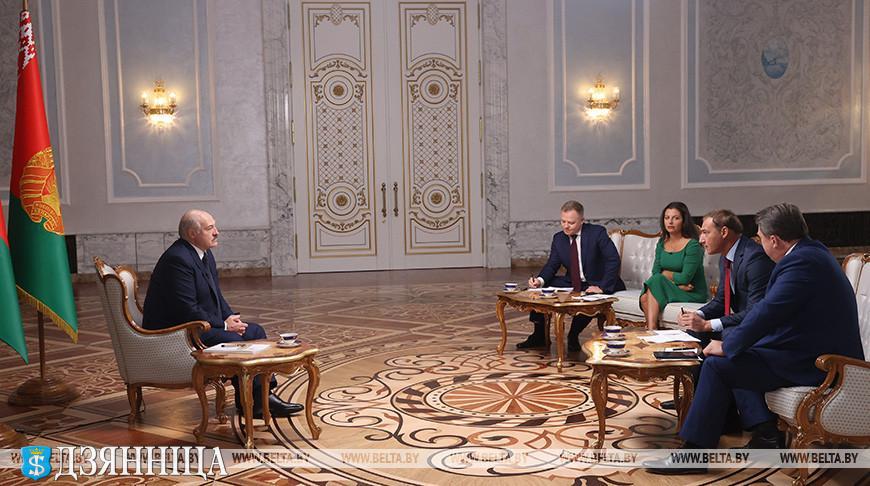 Президент Беларуси Александр Лукашенко дает интервью представителям ведущих российских СМИ, передает корреспондент БЕЛТА.