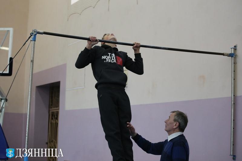 Ажыўлена было ў спартыўнай зале, дзе праходзіў чарговы этап спаборніцтваў – няпоўная разборка-зборка аўтамата. Тут лепшымі сталі патрыёты з клуба “Айчына” СШ №1 г. Шчучына. Яны ж лепшыя ў падцягванні на перакладзіне.