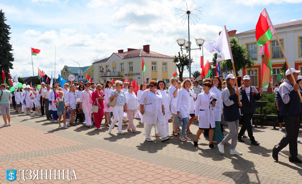 Городская площадь Щучина с трудом вместила такое количество участников праздничного мероприятия. Руководство района, представители трудовых коллективов предприятий, учреждений и организаций, духовенство, педагоги, молодёжь и школьники, гости из Гурьевска собрались все вместе, чтобы отметить главный праздник нашей страны – День Независимости.