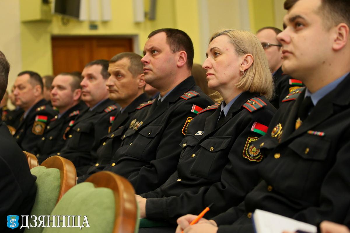 Докладчики говорили о том, что в ушедшем году многое сделано для укрепления правопорядка. Так, первый заместитель начальника-начальник милиции общественной безопасности Павел Найда подчеркнул, что личные составы оперативно-дежурной службы, ОГАИ, уголовно-исполнительной инспекции, отдела охраны правопорядка и профилактики, ИДН, ИВС, отдела миграции и патрульно-постовой службы максимально бдительны и оперативны. Результатом становится снижение поступающих сообщений и заявлений от граждан.