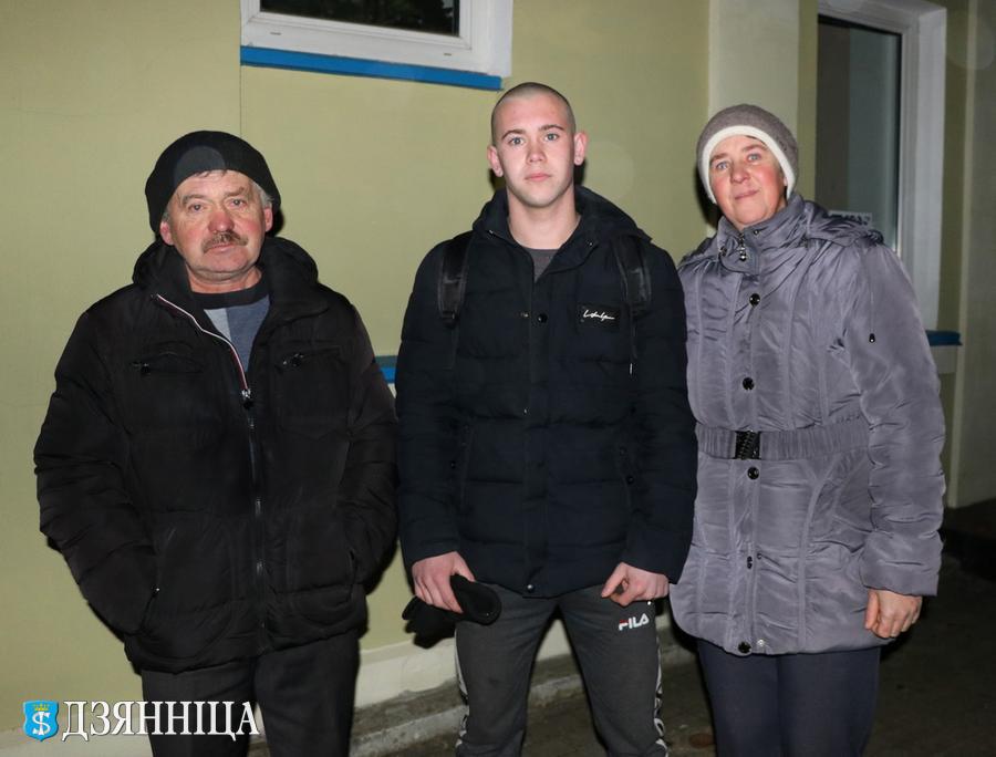 Артёма Халецкого из Щучина пришли проводить в армию любимая девушка Оксана Фортель, которая обещает его обязательно дождаться, мама Ольга Ивановна, папа Александр Евгеньевич и братья Сергей и Алексей.