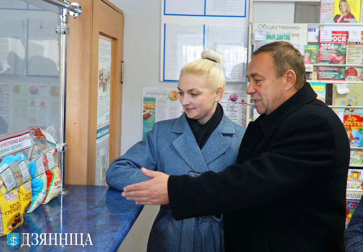 Затем участники выездного мероприятия ознакомились с торговым и бытовым обслуживанием Першемайска: посетили аптеку № 23, отделение почтовой связи, магазин ЧТУП «ЭдемТорг», студию красоты «Цырульня». Посетили гости и административное здание сельисполкома.