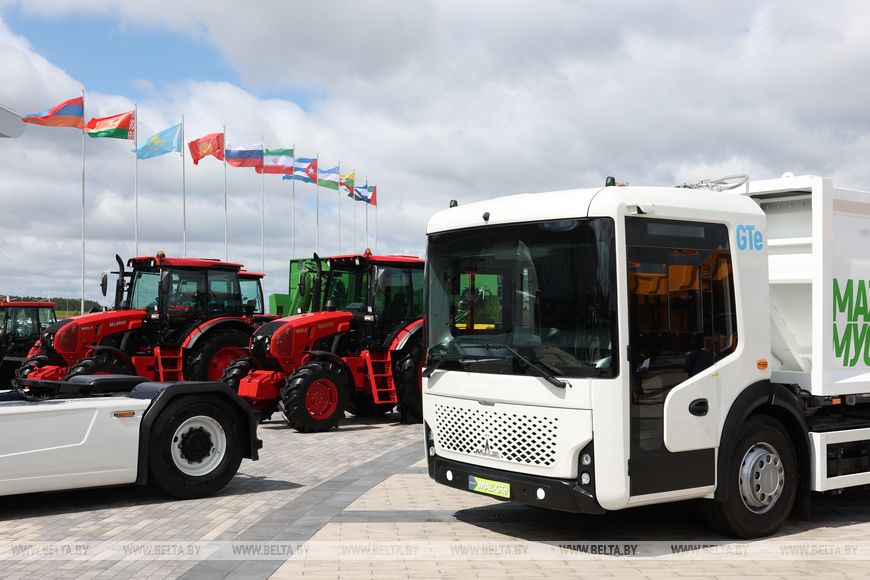 Всего крупные предприятия системы Министерства промышленности презентовали порядка 40 флагманских образцов техники ведущих предприятий. В их числе - городской автобус третьего поколения МАЗ 303948, седельный тягач - гибридный МАЗ-Х, седельный тягач на газомоторном топливе, самосвал для предприятий агропромышленного комплекса, мусоровоз (белорусско-российский кооперационный продукт), электромусоровоз, автомобиль скорой помощи, спортивный автомобиль для международных гонок, тракторы, погрузчики, комбайны, легковые автомобили и др.