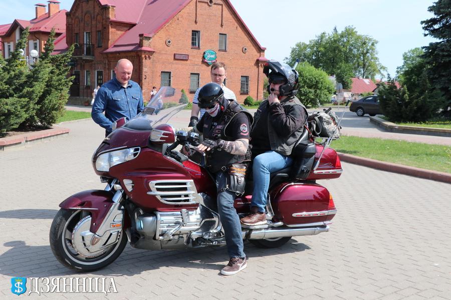 Гостей встречал начальник отдела туристической и инвестиционной деятельности управления экономики райисполкома А.Г. Амшей . Фото на въезде в город Щучин у памятного знака «Самолёт МиГ-25», и колонна мотоциклистов направилась на обзорную экскурсию по городу и встречу с председателем Щучинского райисполкома С.В. Ложечником.