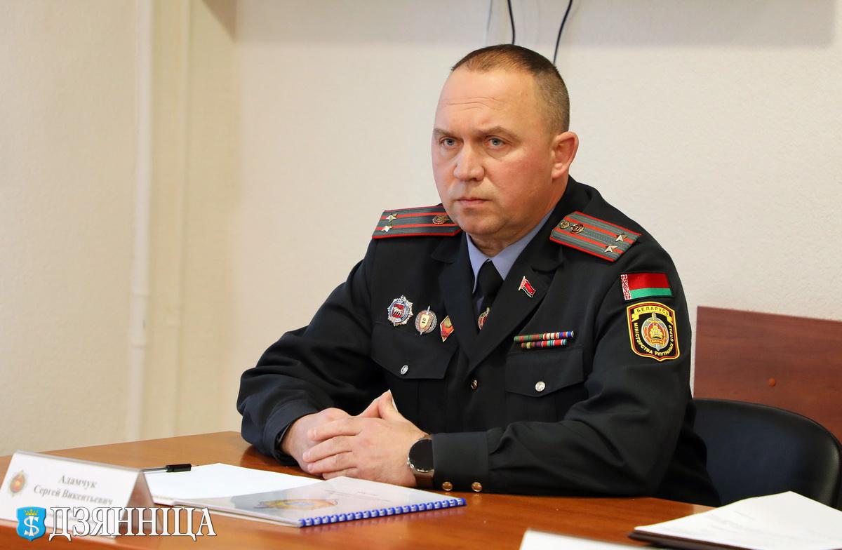 Дмитрий Резенков, представляя нового руководителя личному составу, отметил, что Сергей Адамчук окончил Академию Министерства внутренних дел Республики Беларусь по специальности «правоведение, управление органами внутренних дел». Начал свою службу в органах внутренних дел в 2000 году, служил на различных должностях в ОВД Берестовицкого райисполкома, в 2022-м стал начальником этого отдела. 15 ноября текущего года согласно Приказу министра внутренних дел Республики Беларусь назначен на должность начальника Щучинского РОВД.