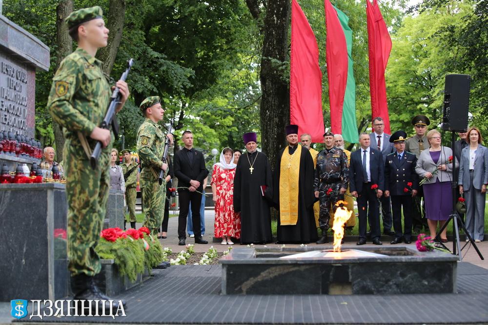 22 июня 1941 года в 4 утра на белорусскую землю упали первые фашистские снаряды. Этот трагический день поделил жизнь мирных белорусов на «до» и «после». С него начался отсчёт самой кровопролитной и страшной войны в истории человечества – Великой Отечественной войны. Скорбная дата и спустя десятилетия глубокой болью отзывается в сердце каждого. Сегодня, 22 июня, в этот скорбный для Беларуси день, в городском сквере у братской могилы советских воинов и партизан, прошёл митинг, посвящённый Дню всенародной памяти жертв войны и геноцида белорусского народа.