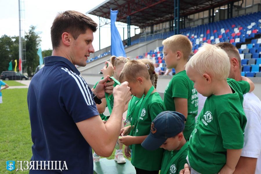 І вось гучыць стартавы свісток. Уся ўвага на поле! Першымі мацнейшага вызначаюць дзеці. Нягледзячы на даволі юны ўзрост, хлопчыкі і дзяўчынкі, не шкадуючы сілаў, праводзяць хуткія атакі, імкліва прарываюцца па флангах і абараняюцца камандай. Усё гэта адбываецца пад бесперапынныя апладысменты і воклічы падтрымкі ад балельшчыкаў. Далей цуды футболу паказваюць ужо таты, іх напору можна толькі пазайздросціць. Завяршалі ж турнір мамы, якія паказалі сапраўды элегантную гульню.