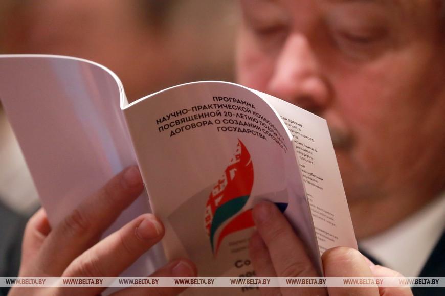 Научно-практическая конференция "Союзное государство: достижения, проблемы, перспективы" собрала около 500 участников из Беларуси и России, которые представляют все ветви власти, бизнес, академическое и культурное сообщество, ведущие СМИ. Помимо пленарного заседания проходят шесть тематических секций, посвященных вопросам сближения законодательств, формирования единого экономического пространства, модернизации транспортной инфраструктуры, социальной политики в Союзном государстве, сотрудничества в сфере безопасности и борьбы с терроризмом.
