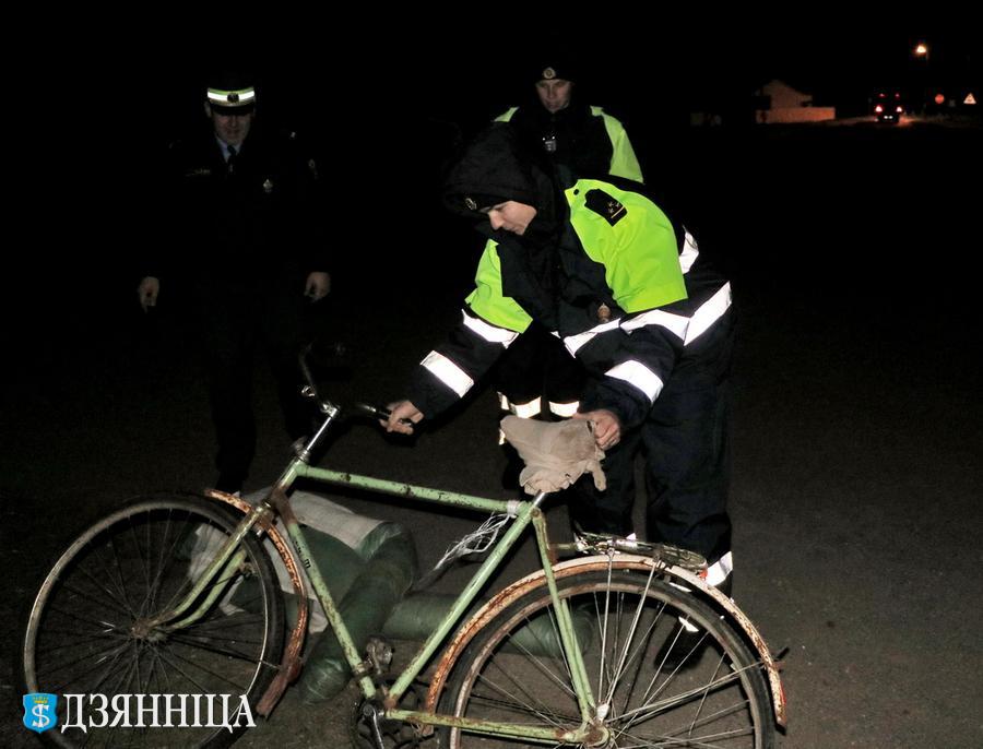 В районе шести вечера вместе со старшим инспектором ДПС Андреем Александровичем Антоновичем и инспекторами ДПС Павлом Владимировичем Старчуком и Русланом Витальевичем Борисевичем отправились на станцию Рожанка, прихватив с собой … манекен, который должен был исполнять роль велосипедиста, и велосипед. Нашего мнимого участника дорожного движения вместе с его транспортным средством инспекторы ГАИ уложили на обочине неподалёку от железнодорожного переезда, где в вечернее время достаточно интенсивное движение. “Пострадавшего велосипедиста” хорошо освещал уличный фонарь.