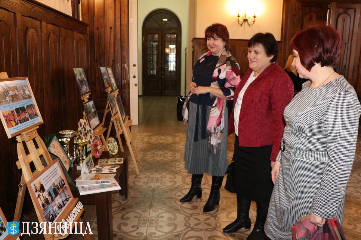 В фойе Щучинского дворца творчества детей и молодёжи развернулась грандиозная выставка, на которой были представлены достижения учреждений образования района, направления их деятельности. Накопленный опыт по организации воспитательной работы был объединён одной темой с глубоко символичным названием "Память в сердце храня".