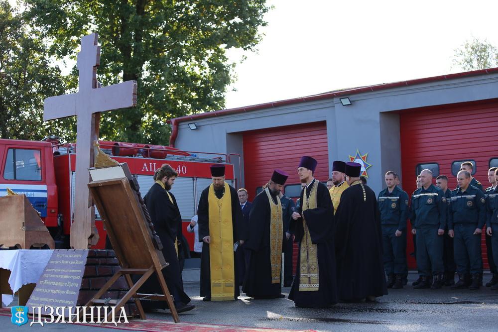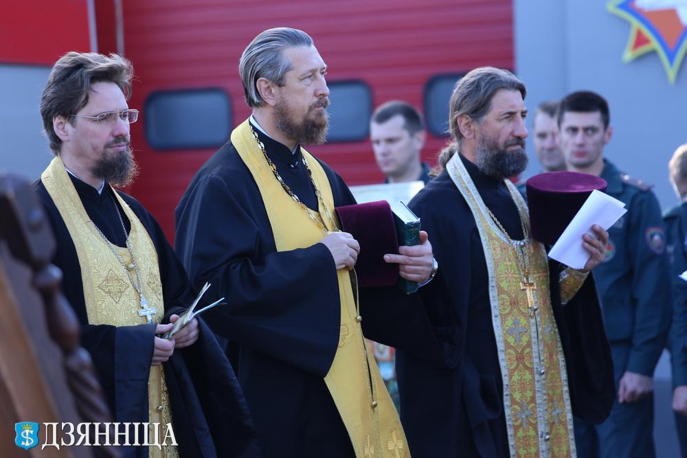 Далее Крестный ход «Белая Русь» отправился в РОЧС на улицу Мира, где тоже состоялся молебен и освящение здания, помещений и техники.