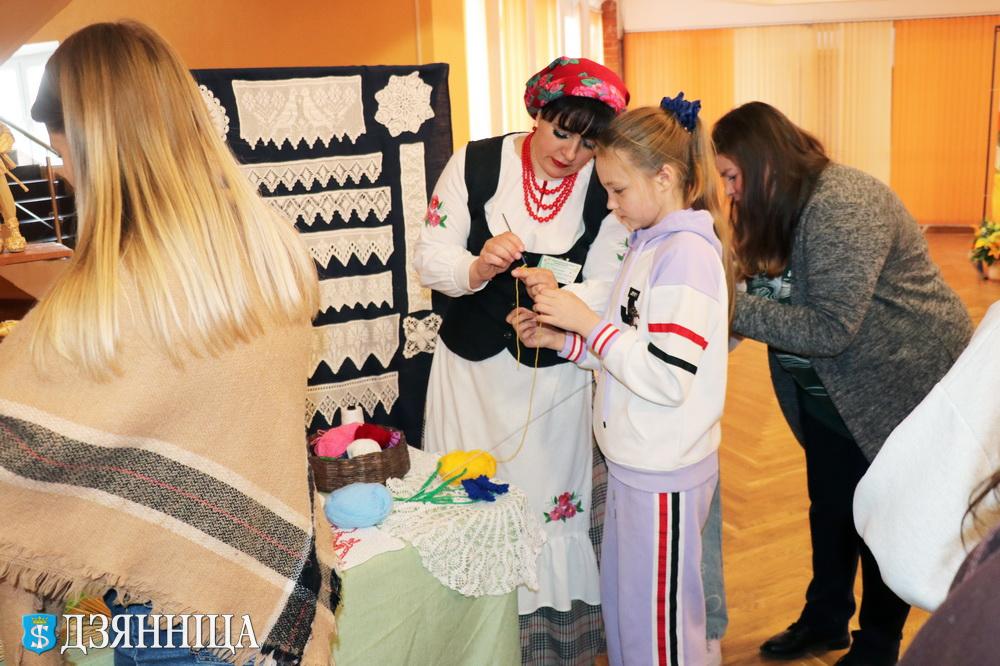Другі майстар-клас быў прысвечаны больш вытанчанаму, але не менш цікаваму рамяству – карункапляценню. Госці мерапрыемства атрымалі магчымасць дакрануцца да гісторыі стварэння карункаў разам з майстрам Маргарытай Гарадзіенка, якая ў дакладнасці валодае гэтай тэхнікай. Жанчына паказала, як звычайная нітка можа ператварыцца ў цёплы аксесуар.
