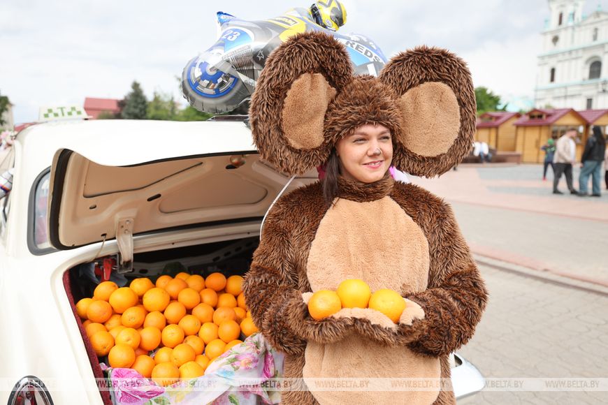 Красочный парад колясок, история которого насчитывает более десяти лет, стартовал с Советской площади, их маршрут пролег через ул.Советскую и завершился в парке Жилибера. По дороге сопровождающие шествие крокодил Гена и Чебурашка раздавали детям апельсины, фруктами они запаслись основательно - 50 кг хватило для всех.
