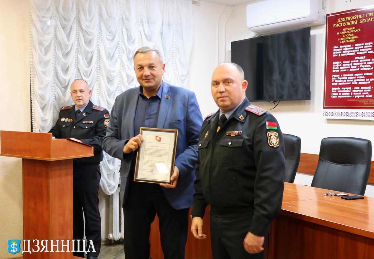 С праздником поздравил ветеранов органов внутренних дел Михаил Майко. Он также выполнил почётную миссию и вручил новенькие погоны сержантам милиции, которые получили очередное звание "старший сержант милиции", Дмитрию Проскурову – водителю оперативно-дежурной службы, и Максиму Фроленкову – младшему инспектору ДПС, а также табельное оружие – пистолет Макарова – молодым сотрудникам – прапорщикам милиции Максиму Кахновичу – инспектору ДПС ОГАИ Щучинского РОВД, и Александру Фесько – участковому инспектору милиции.