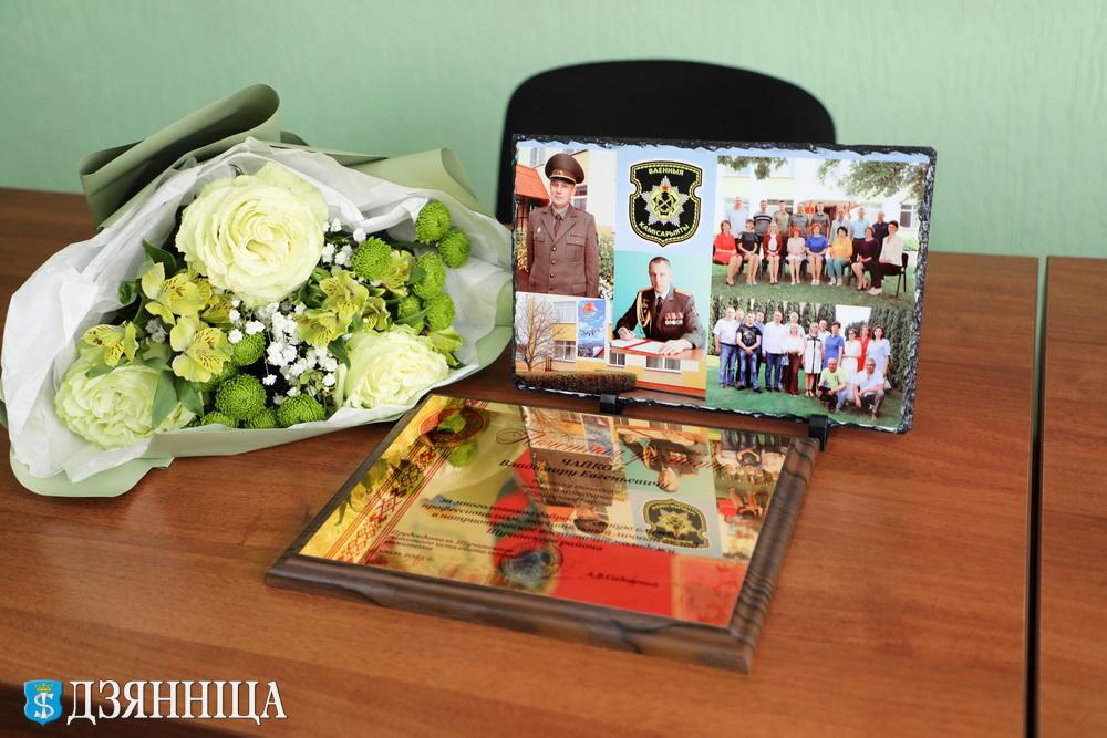 Высказали слова признательности Владимиру Чайко за ответственное отношение к делу, высокий профессионализм, личный вклад в достигнутые результаты работы райвоенкомата заместители председателя райисполкома Михаил Сущевский и Татьяна Тюсина. Владимир Чайко 12 лет посвятил работе в военкомате, в том числе 6 лет -- на руководящей должности.