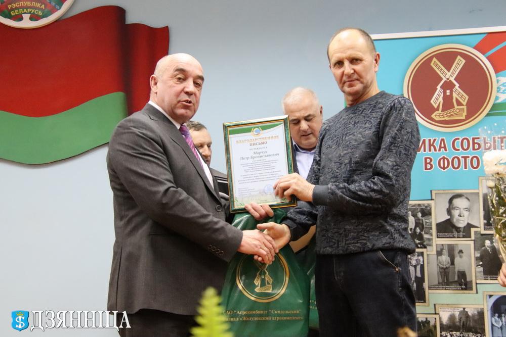 – Ведаючы вынікі работы адчуваю гонар за ваш калектыў і штогадовае паступовае пазітыўнае развіццё. Выказваю вялікую падзяку вам за работу ў не самых простых эканамічных умовах. Ваша культура земляробства – гэта практычна ўзор для ўсяго раёна. Вынікі ў жывёлагадоўлі таксама вартыя павагі. Гэта ўсё дзякуючы зладжанай працы ўсяго калектыву. Дзякуй вам за тое, што любіце зямлю на якой працуеце. Гэта заслугоўвае павагі.