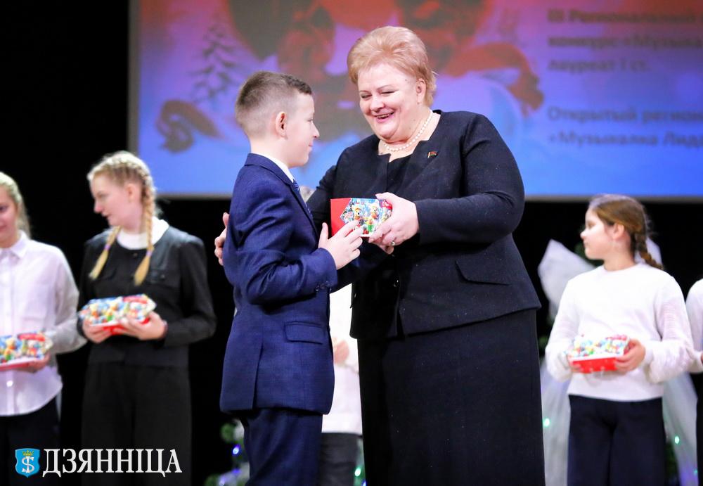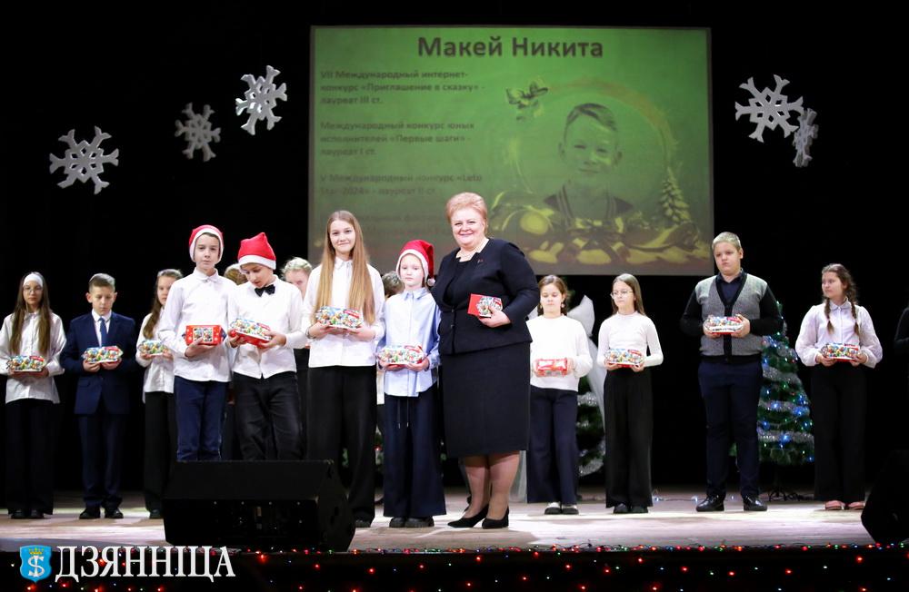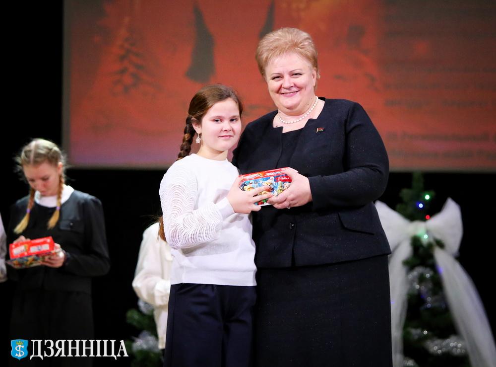 С каждым годом количество обладателей сладких наград становится всё шире. Например, в этомаж53 талантливых ребёнка получили красные коробки с конфетами от председателя районного Совета Депутатов Анны Хведюк и заместителя председателя райисполкома Татьяны Тюсиной. Перед этим почётные гости поздравили всех с наступающими праздниками, поблагодарили за упорный труд педагогов и их учеников, а также напутствовали всех на новые будущие достижения.