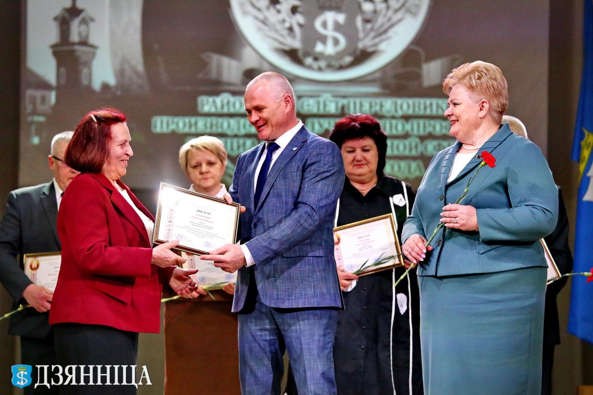 Кульмінацыяй урачыстасці стала ўзнагароджанне пераможцаў раённага спаборніцтва сярод суб'ектаў гаспадарання, калектываў вытворчых падраздзяленняў, працаўнікоў раёна, сельсаветаў за дасягненні высокіх паказчыкаў у працы і сацыяльна-эканамічным развіцці ў 2023 годзе. Пераходныя Ганаровыя сцягі кіраўнік раёна Аляксей Садоўскі і старшыня раённага Савета дэпутатаў Ганна Хвядзюк уручылі працоўным калектывам ТАА “Праймілк”, ААТ “Дэмбрава”, філіяла “Аўтамабільны парк № 12 г. Шчучына”, ДРБУ № 161, кіраўніцтву Астрынскага сельсавета.