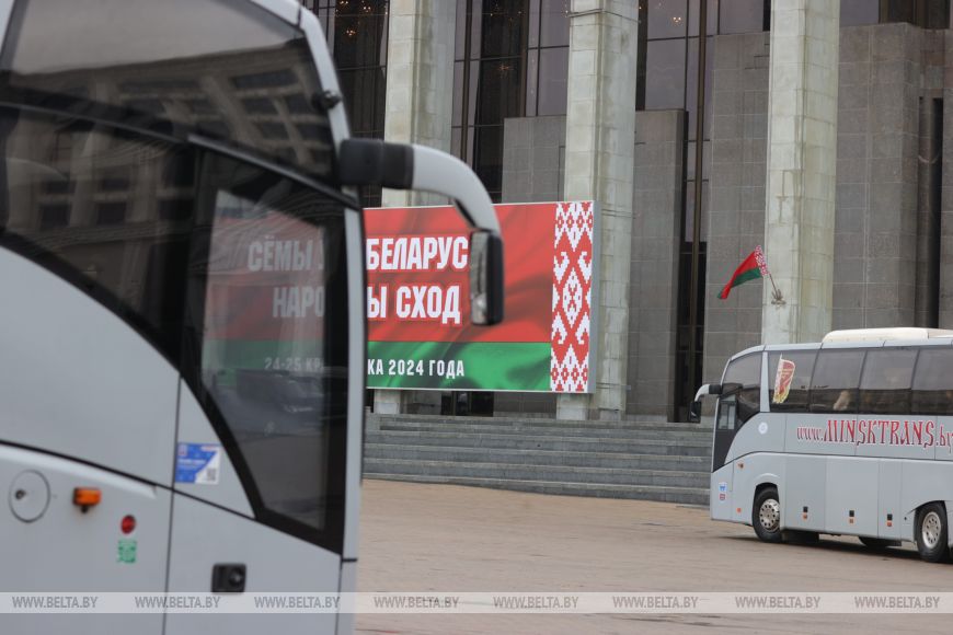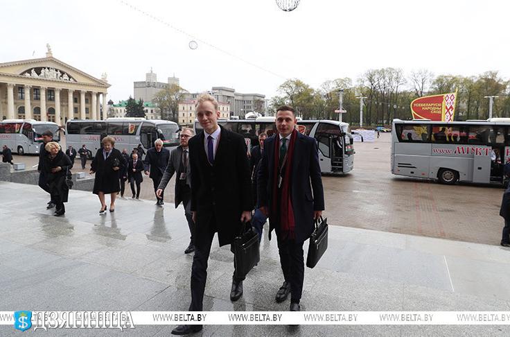 Делегаты из всех регионов Беларуси прибывают в Минск во Дворец Республики для участия в VII ВНС.