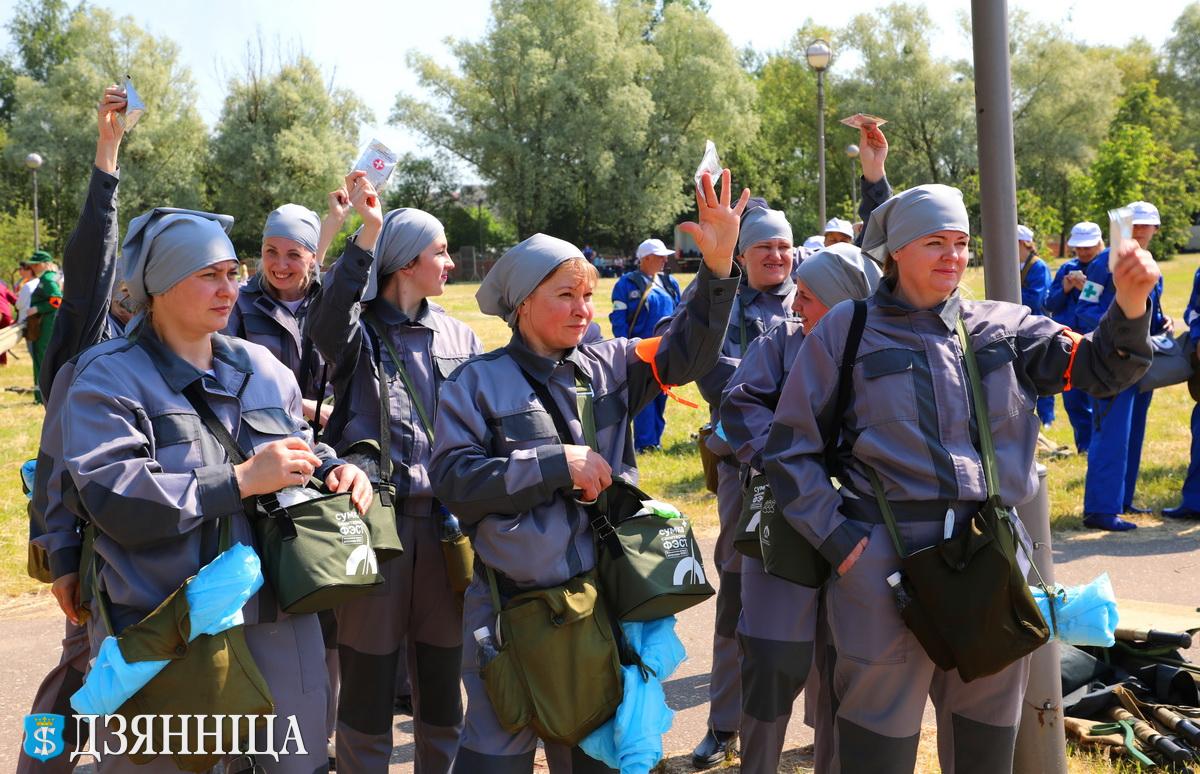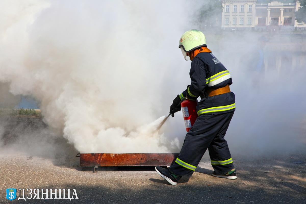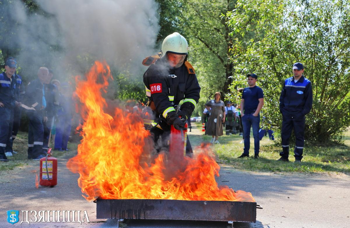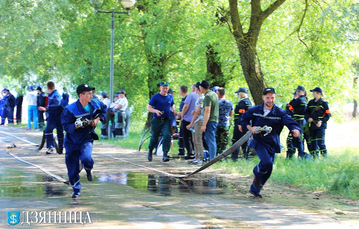 Спасатели преодолевали пожарную эстафету, включающую преодоление препятствий, тушение очага возгорания и боевое развертывание от пожарных мотопомп. Лучше всех с этим справилась добровольная пожарная команда РУП ЖКХ.