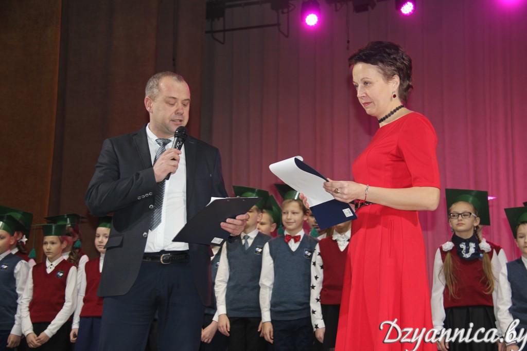 Раздзяліць з рабятамі радасць такой сур'ёзнай у іх жыцці падзеі прыйшла і Н.Я. Лебедзь – былы дырэктар гімназіі. Яна прызналася, што вельмі сумуе па тых днях, калі працавала ў гэтай навучальнай установе, па сваіх вучнях. А пяцікласнікам Наталля Янаўна пажадала многа працаваць, пакарыць самыя высокія навуковыя і творчыя вяршыні, а калі сустрэнуцца цяжкасці – абавязкова звяртацца па дапамогу да настаўнікаў.
