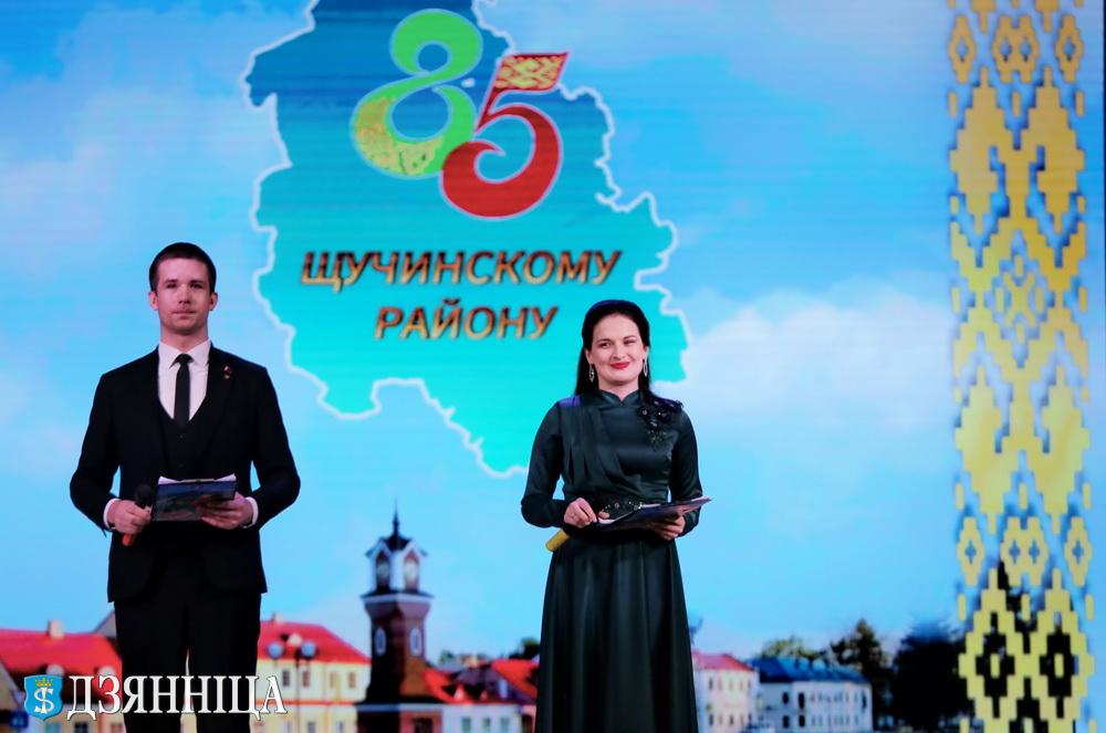 Урачыстае мерапрыемства пачалося са святочнага пралога і выканання Дзяржаўнага гімна. На юбілейную ўрачыстасць у зале сабраліся кіраўніцтва раёна, ветэраны працы, прадстаўнікі працоўных калектываў, грамадскіх арганізацый, каб перавярнуць 85-ю старонку нашай гісторыі і падзякаваць працавітым землякам. Радасць свята прыехалі раздзяліць са шчучынцамі ганаровыя госці: старшыня Гродзенскага абласнога Савета дэпутатаў Алена Пасюта, старшыня абласной арганізацыі Беларускага прафсаюза работнікаў АПК Міхаіл Сіцько. Сярод дарагіх гасцей і Ганаровыя грамадзяне горада Шчучына Валяр’ян Жоль, Сяргей Ушкевіч, былы кіраўнік Шчучынскага раёна Іван Сакалоўскі.