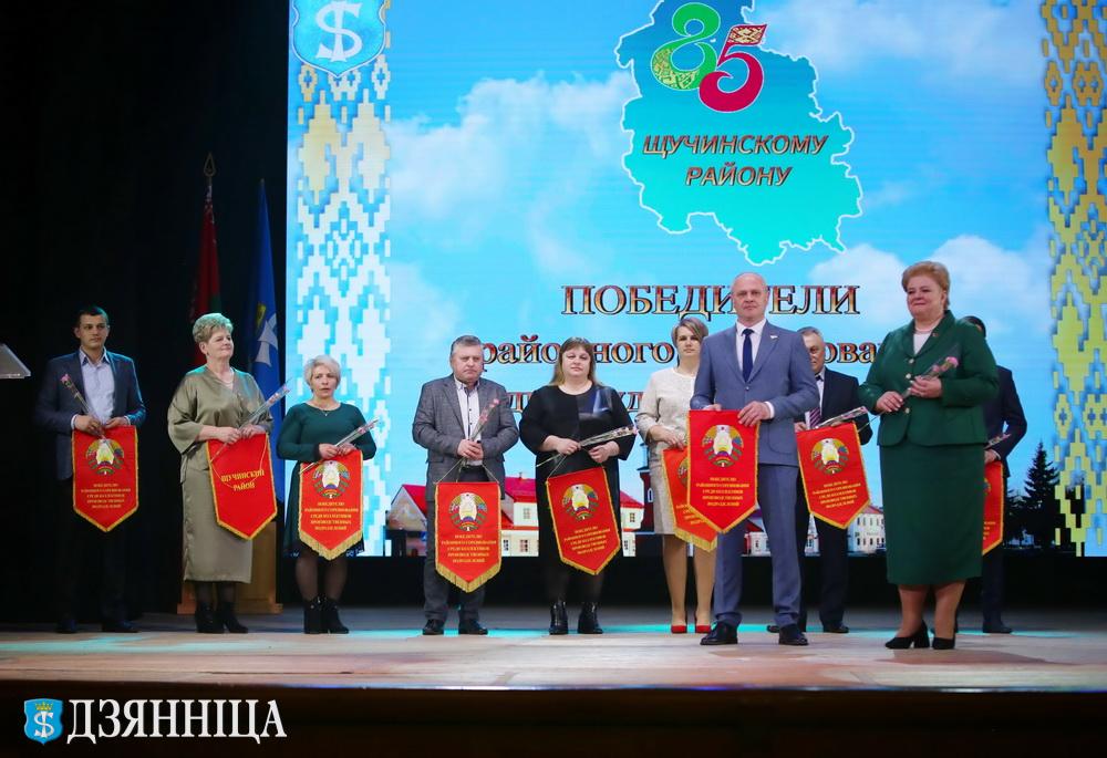 Заслужаныя ўзнагароды атрымалі і пераможцы штогадовага агляду-конкурсу на лепшую арганізацыю работы па ахове працы. Адзначылі стваральную працу шчучынцаў таксама старшыня раённай арганізацыі РГА “Белая Русь” Юрый Пашук, прафсаюзны лідар аграрыяў раёна Генрых Юрэвіч і сакратар раённай арганізацыі ГА “БРСМ” Дзмітрый Чывіль.