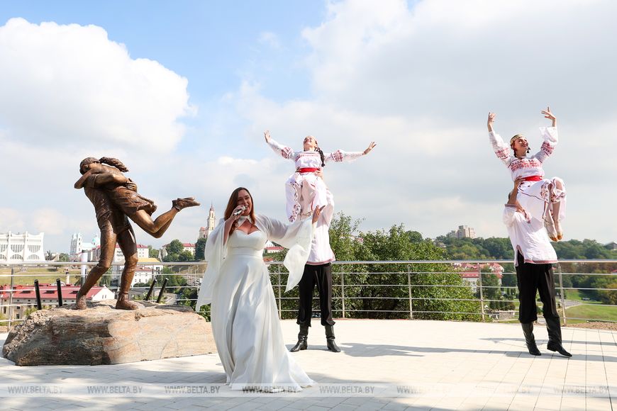Молодожены, чей стаж пока очень скромен, Максим и Татьяна Шанчук поженились 29 августа. "Мы оба из Гродно, познакомились в соцсетях. Только-только поженились и рады оказаться здесь на таком символическом событии, приятно, что пригласили. Однозначно этот сквер станет нашим любимым местом для прогулок", - поделились молодые люди.