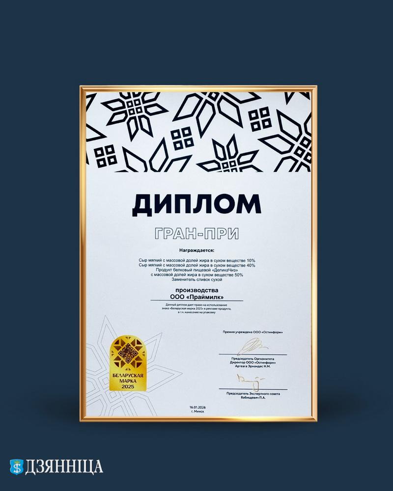 Гран-при премии «Лидер года – 2025» отправляется в Щучин: ООО «Праймилк» отмечено за инновации в переработке сыворотки