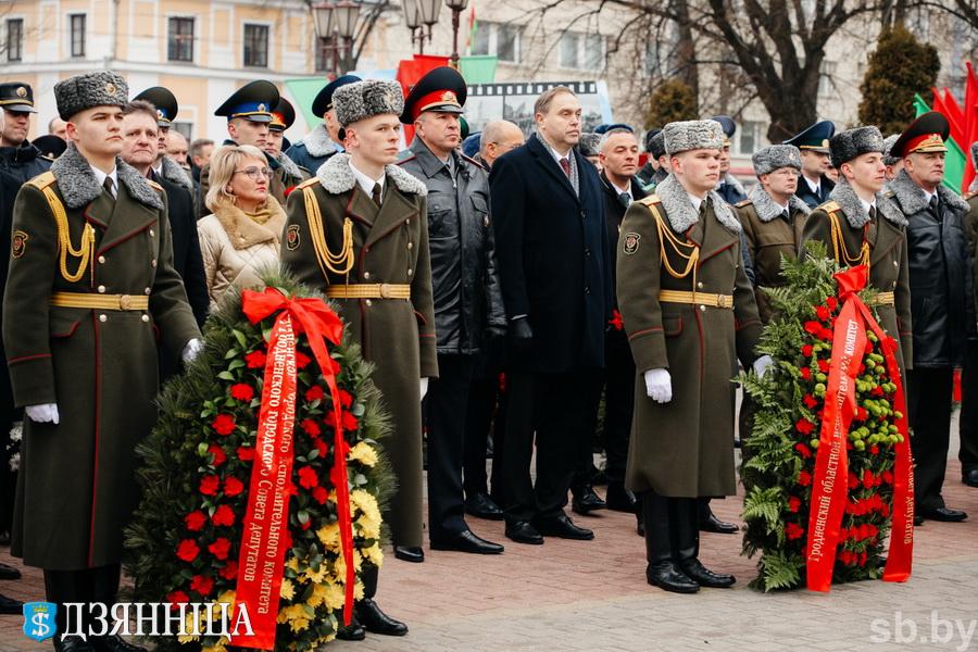 Сегодня в Гродно состоялись мероприятия, посвященные Дню защитников Отечества. В парке имени Жилибера прошел митинг, председатель Гродненского облисполкома Владимир Караник, помощник Президента – инспектор по Гродненской области Юрий Караев, председатель областного Совета депутатов Игорь Жук, представители правоохранительных структур, трудовых коллективов и общественных организаций возложили венки и цветы к братской могиле советских воинов и партизан, погибших в годы Великой Отечественной войны.