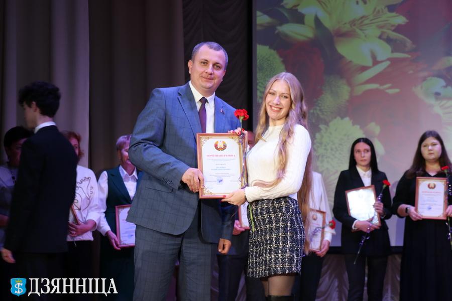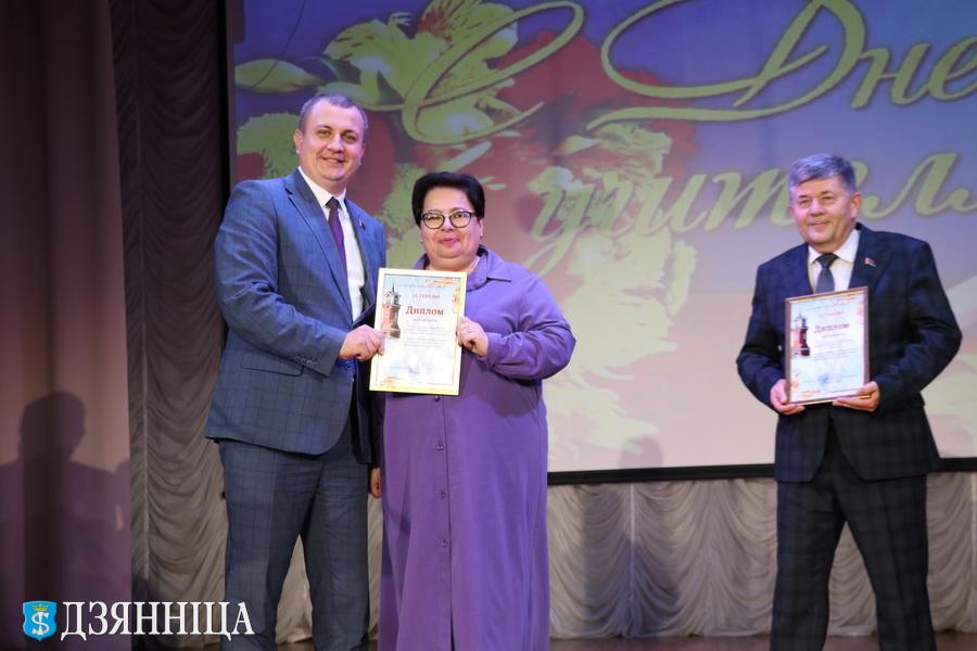 Церемонию награждения продолжила председатель Щучинского районного Совета депутатов Анна Хведюк. Самые искренние слова адресовала она педагогам, а также вручила начальнику отдела образования Щучинского райисполкома Приветственный адрес председателя Гродненского областного Совета депутатов Елены Пасюта. Благодарственным письмом председателя Гродненского областного Совета депутатов награждены Нина Гиль -- учитель русского языка и литературы средней школы №3 г. Щучина имени В.А. Рудого, Михаил Чернодедов -- педагог дополнительного образования Щучинского дворца творчества детей и молодежи, а Почетной грамоты Щучинского районного Совета депутатов удостоены Ольга Гудень -- заместитель директора по учебно-методической работе гимназии г. Щучина, Ирина Поскина -- заместитель директора по учебно-методической работе Щучинского ДТДиМ и Татьяна Иоч -- заведующий отделением Щучинского ДТДиМ.