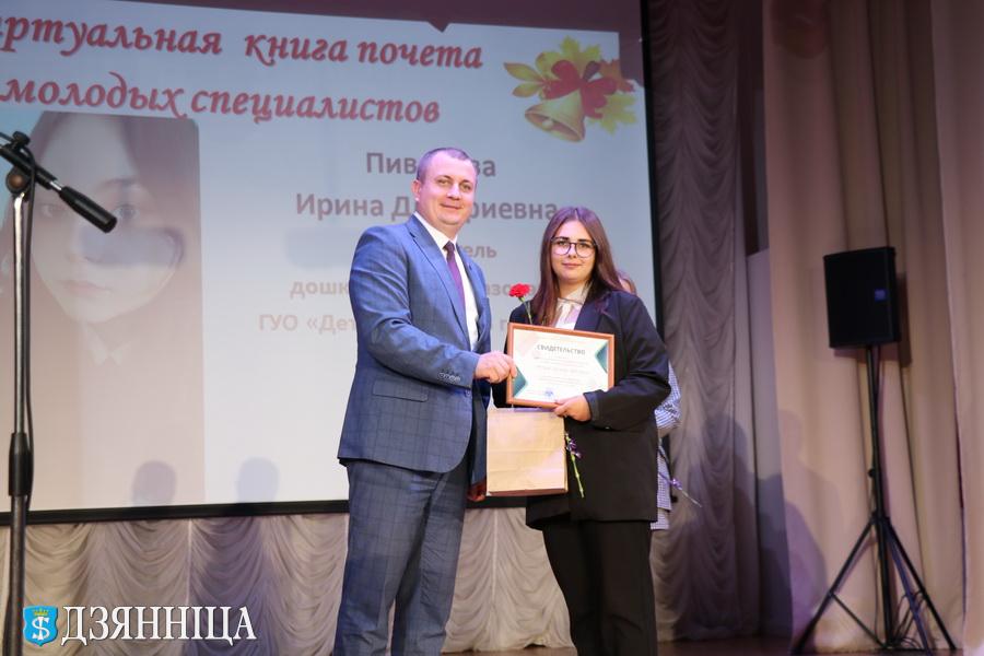 Уже по доброй традиции в канун Дня учителя в районную виртуальную книгу почёта заносятся имена молодых специалистов. На этот раз соответствующие сертификаты начальник отдела образования вручил Елизавете Ясюкевич -- педагогу-психологу средней школы № 2 г. Щучина, Диане Рудой -- воспитателю дошкольного образования детского сада № 3 г. Щучина, Ирине Пивцаевой -- воспитателю дошкольного образования детского сада № 3 г. Щучина и Екатерине Недвецкой -- учителю химии и биологии Василишковской средней школы.