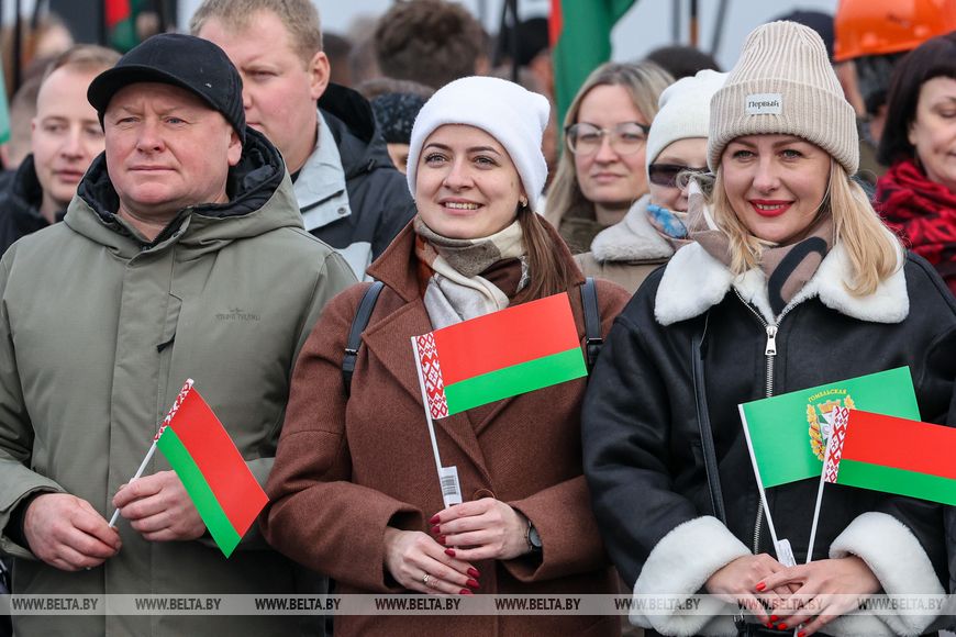 Глава государства в торжественной обстановке перерезал символическую красную ленточку. На церемонию были приглашены представители трудовых коллективов дорожных организаций, участвовавших в строительстве моста, жители Мозырского района. По сложившейся традиции ко Дню Октябрьской революции людям преподносят подарки - значимые, масштабные объекты, и обновленный мост - один из них.