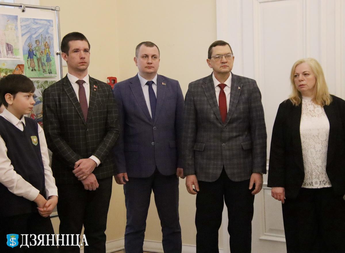 В ней собраны отражения подвига советского народа и страшных военных лет, а также мирные дни современной Беларуси глазами детей и молодёжи. Увидеть работы юных художников, а также поприветствовать педагогов, родителей и ветеранов пришли председатель Щучинского районного Совета депутатов Анна Хведюк, начальник отдела образования райисполкома Павел Тарчинский, председатель районного совета ветеранов Светлана Малюгина, первый секретарь РК ОО «БРСМ» Дмитрий Чивиль и заместитель председателя районного отделения Белорусской партии «Белая Русь», председатель районной организации РОО «Белая Русь» Юрий Пашук.