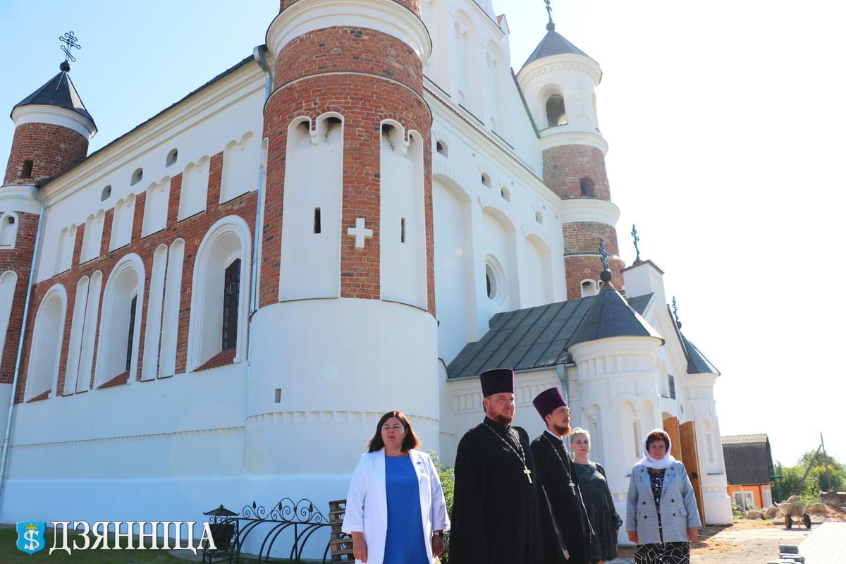 Далучылася да віншавальных слоў і Таццяна Цюсіна, падкрэсліўшы, што старт падрыхтоўкі да юбілею царквы – гістарычнага помніка сусветнага значэння, пачынаўся з сур’ёзных фінансавых асігнаванняў на рэстаўрацыю фасада будынка з прэзідэнцкага фонду. Сёння старажытны храм, нібы памаладзеў, стаў яшчэ больш прыгожым і велічным. Гэта – наш гонар.