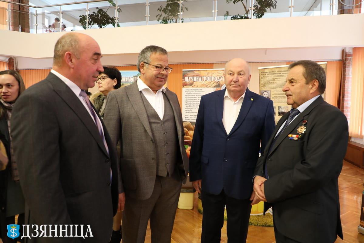 Да пачатку ўрачыстасці ў фае РЦКіНТ увазе шчучынцаў і гасцей горада была прадстаўлена выстава-дэгустацыя сельскагаспадарчай прадукцыі, што выпускаецца прадпрыемствамі раёна.