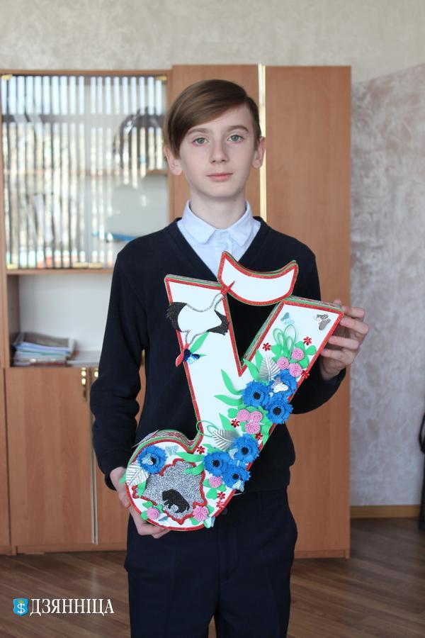 – Мы прыдумалі і змайстравалі літару Ў разам з мамай, – расказвае пераможца Данііл Балтрукевіч. – На ёй адлюстраваны контур і арнамент нашай краіны, яе сімвалы – зубр, бусел, васілёк. Я вельмі ганаруся, што перамагла менавіта наша літара.