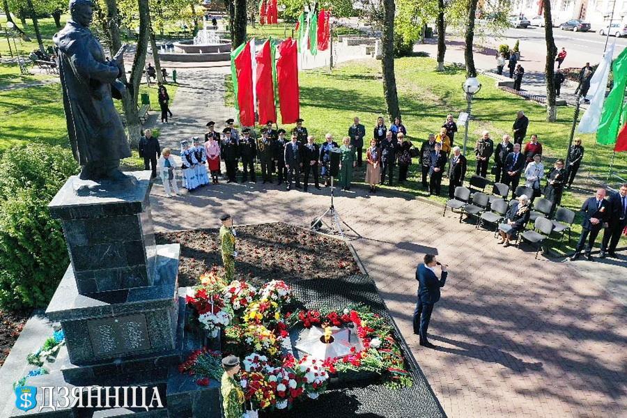 У святочны дзень кіраўніцтва раёна, ветэраны вайны і працы, Узброеных Сіл, прадстаўнікі працоўных калектываў і грамадскіх арганізацый сабралася каля помніка загінуўшым воінам у гарадскім скверы, каб аддаць даніну мужнасці тым, хто набліжаў вызваленне роднай зямлі ад нямецка-фашысцкіх захопнікаў.