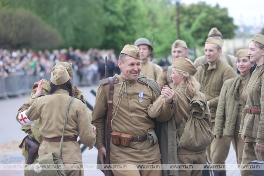 Его коллега Виктор Егоров отметил, что тоже благодарен за возможность стать частью реконструкции, окунувшей жителей Гродно в события 80-летней давности. "Это было потрясающе. Эмоции переполняют, - сказал он. - У нас в семье по маминой линии есть участник Великой Отечественной войны, поэтому для меня большая честь поучаствовать в таком событии".