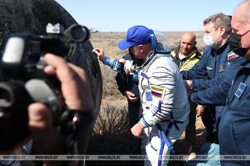 К счастью, в отличие от старта, на посадке автоматика не подвела: приземление спускаемого аппарата произошло штатно 6 апреля в 10.17 по минскому времени приблизительно в 150 км юго-восточнее города Жезказган. Мягкую посадку обеспечили основной парашют площадью в 1 тыс. кв.м, раскрывшийся на высоте нескольких километров и значительно снизивший скорость спуска, а также специальные двигатели, которые включаются за несколько метров до приземления. Впрочем, посадку можно называть мягкой лишь условно. В этот момент космонавты никогда не разговаривают, так как от удара о Землю, который по силе сравним со столкновением легкового автомобиля с грузовиком, есть большая вероятность прикусить себе язык или даже вывихнуть челюсть.