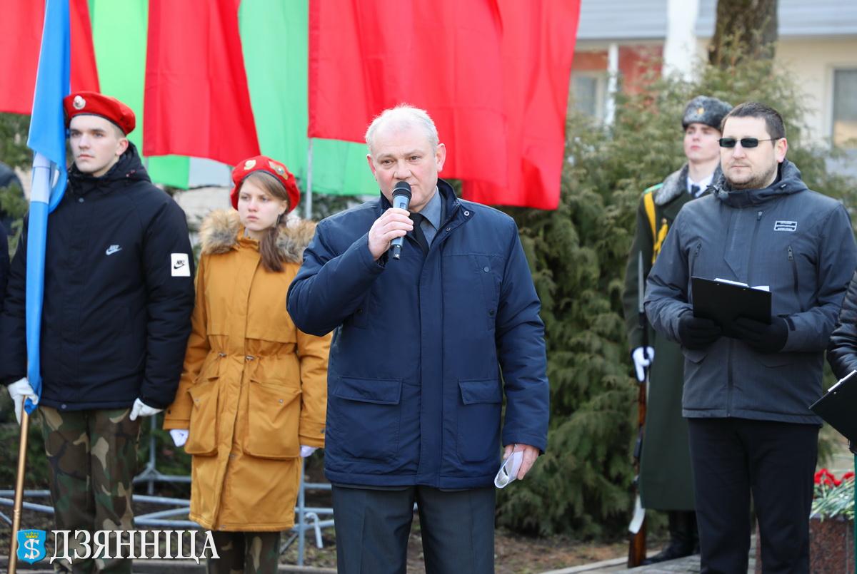 Митинг у памятного знака «Солдатам необъявленной войны» начался с внесения флага и исполнения Гимна Республики Беларусь. Ведущие взволнованно рассказывали о той необъявленной войне в чужих раскалённых горах, где совершали подвиги около 30 тысяч воинов-интернационалистов из Беларуси. К участникам митинга обратился председатель Щучинского районного исполнительного комитета Алексей Садовский: