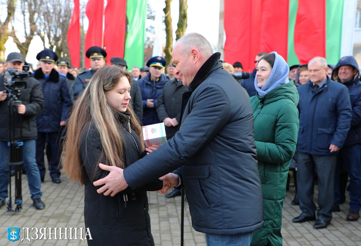 Символично было и то, как в торжественной обстановке первый секретарь райкома БРСМ Виталия Лелявко и глава района Алексей Садовский вручили самым активным ребятам, вступившим в ряды Белорусского республиканского союза молодёжи, членские билеты.