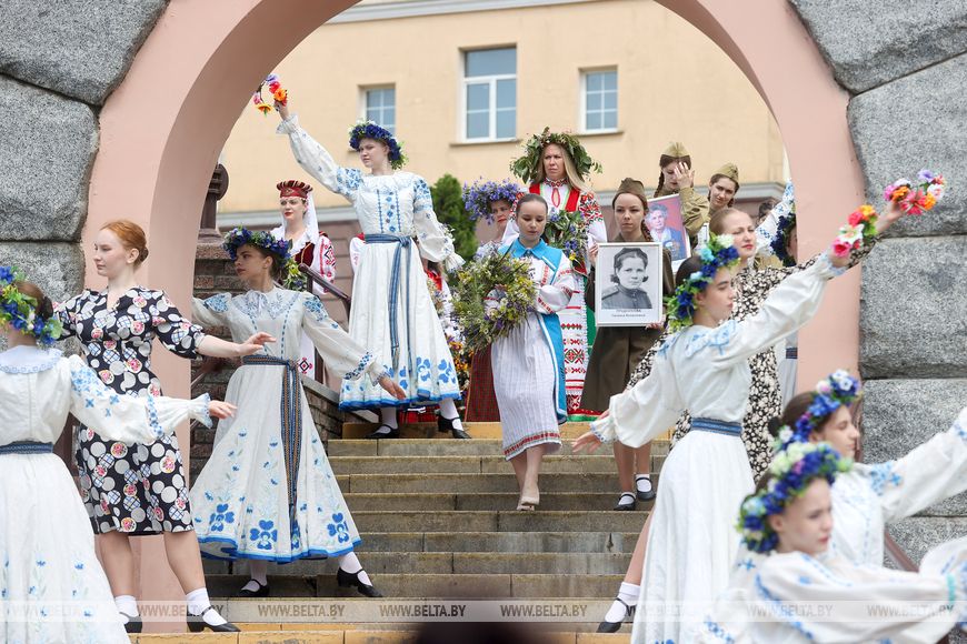 Заместитель председателя Гродненского облисполкома Виктор Пранюк заявил, что акция носит глубокий, сакральный смысл. "Ваши бабушки и прабабушки, которые были наравне с мужчинами, встали вместе с ними в строй, они воевали на фронтах, были подпольщицами, партизанками. Они ковали Победу глубоко в тылу и совершили подвиг. Сейчас, спустя 80 лет, мы говорим даже не "подвиг", а "чудо", - отметил Виктор Пранюк, обращаясь к участникам мероприятия. - И так, как они любили свою Родину, так, как они любили свою семью, мы, потомки Победителей, вместе с вами должны точно так же бережно относиться к нашей родной природе, к нашим древним озерам, лесам, к нашим детям, родителям. Ко всему тому, что нас окружает. Любовь к нашей стране - это генетический код каждого белоруса. Поэтому сегодня, отдавая дань памяти героям прошедших лет, мы торжественно клянемся продолжать их дело".