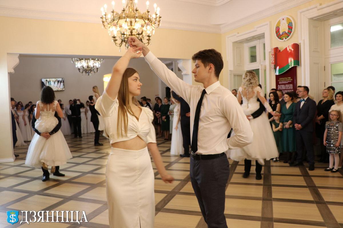 А на танцполе – учащиеся гимназии г. Щучина. Их закружил его величество вальс. Танцевальную эстафету у гимназистов приняли учащиеся Гродненского областного кадетского училища. С особым удовольствием участники бала исполняли простой и изящный падеграс, который родился в 19 веке, но благодаря своей лаконичности сохранил популярность как бальный танец вплоть до настоящего времени. Грациозно, с особым чувством танцевали вальс молодые специалисты, а учащиеся средней школы № 2 и средней школы № 3 продемонстрировали настоящий класс, составляя разные фигуры забавного котильона.