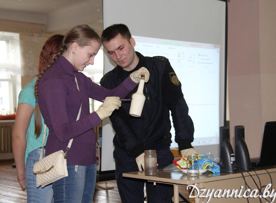 Што й казаць, зацікавіў рабят Дзмітрый Валяр’янавіч! Ён расказаў, якія бываюць віды судовых экспертыз, як яны праводзяцца. На практыцы прадэманстраваў, як здымаюцца адпячаткі пальцаў, паказаў, што знаходзіцца ў чамаданчыку экспертаў і як гэтыя прыстасаванні дапамагаюць працаваць на месцы ўчынення злачынства. Магчымасць паспрабаваць сябе ў ролі эксперта атрымалі і рабяты.