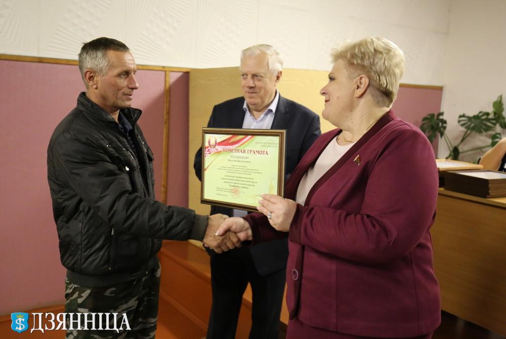 В торжественной обстановке Анна Хведюк вместе с директором ДРСУ-161 Мечиславом Стельмашком вручили работникам дорожной службы Почётные грамоты и благодарности.