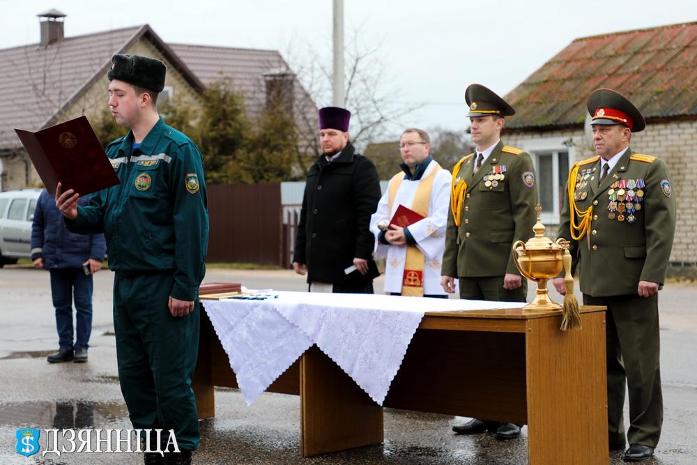 Присяга, новые звания и освящение техники. В Щучине прошло торжественное мероприятие, посвящённое Дню спасателя