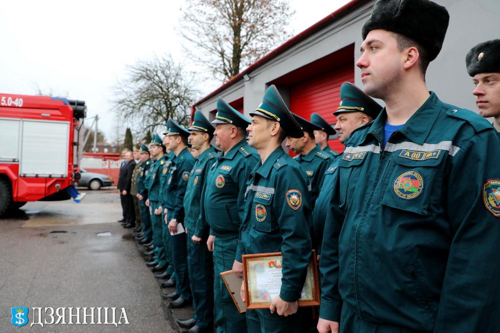 Нагрудным знаком МЧС Республики Беларусь «Выдатнік» отмечен прапорщик внутренней службы Андрей Юшкевич. Юбилейная медаль «20 лет органам и подразделениям по чрезвычайным ситуациям Республики Беларусь» вручена Павлу Олешкевичу, Александру Трахимчику, Дмитрию Саковичу, Вадиму Степанцевичу, Николаю Ковалевскому и Виталию Некревичу.